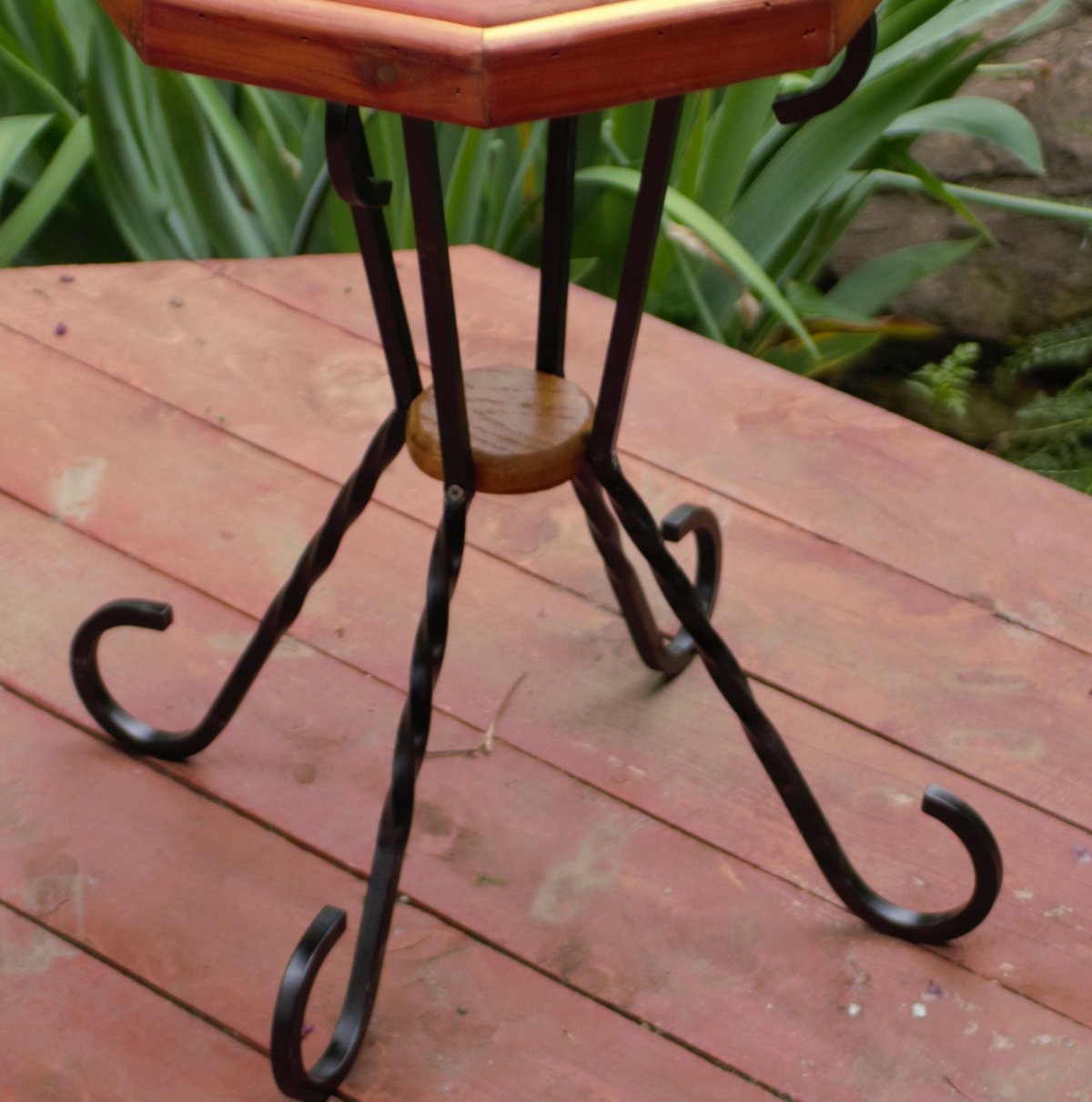 One Table: 100% Cedar Wood TOP with Solid Ornamental Metal Legs, made in the USA for your Deck or Lawn. The top comes pre-treated with Cedar Tone TWP Oil treatment, and Black Painted Metal Legs.