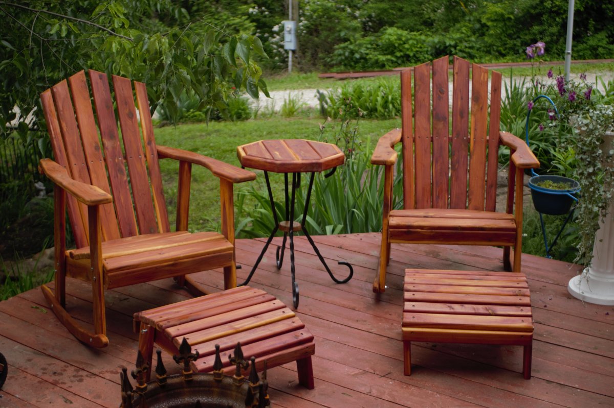 Due to the Eastern Red Cedar, these rocking chairs and table have a rustic look that adds to any outdoor decor. And because of this, you may find natural imperfections in the wood, like knots, exposed bark, or checking. None of these things hurt the performance of the chair, but give it that unique Rustic look that we know you'll love.